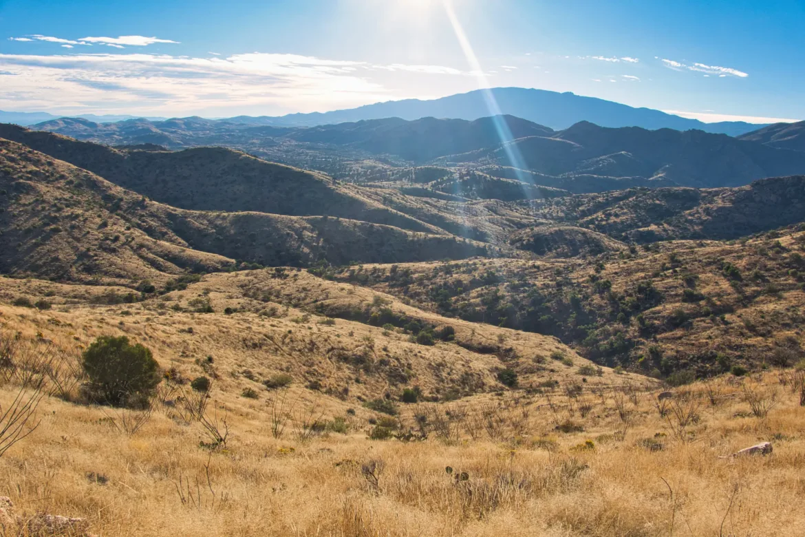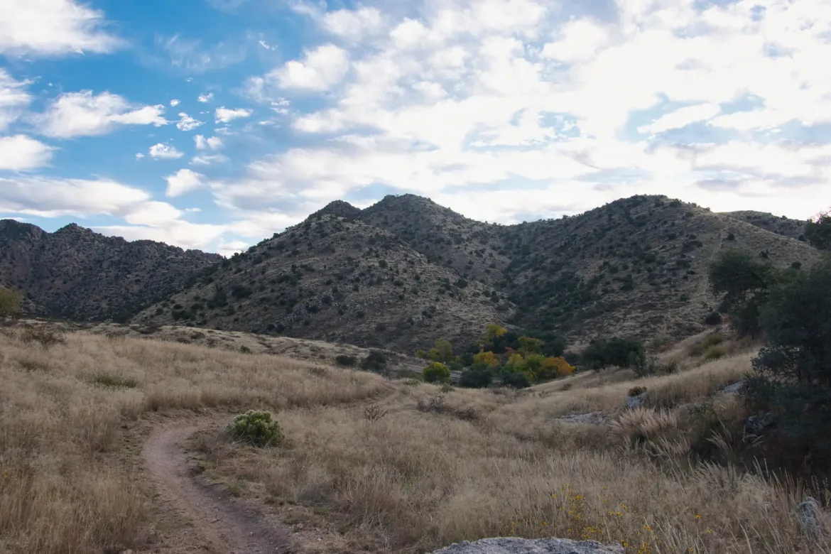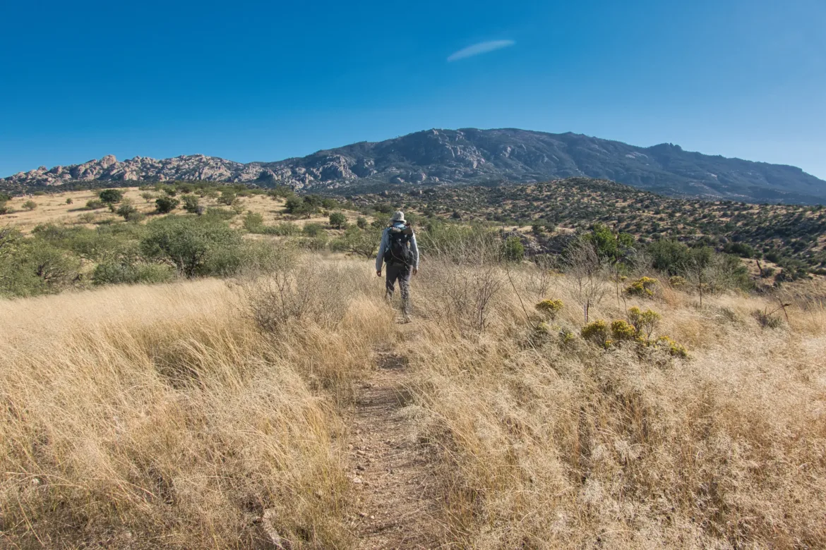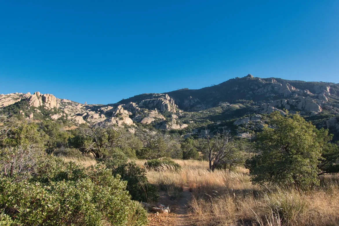 Yesterday’s hiking seems to have gotten beyond the ruggedness of Mt. Lemmon, and the trail was much more gentle today. It started on rolling hills walking down a valley before crossing a road and climbing to a minor pass.