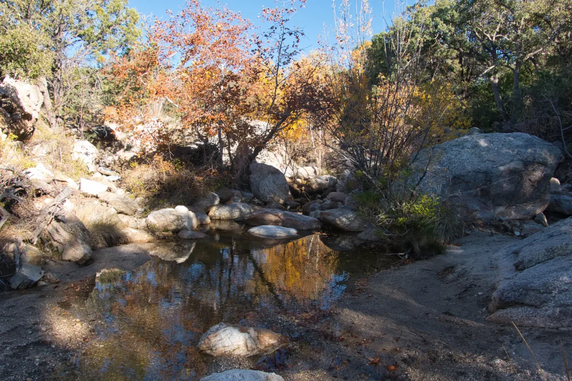 As I crossed the last large wash before starting the ascent of Mica, I finally saw 2 javalina briefly foraging on the shore. They bolted quickly when they saw me, and they were actually near another hiker taking a break. She had no idea they were there.