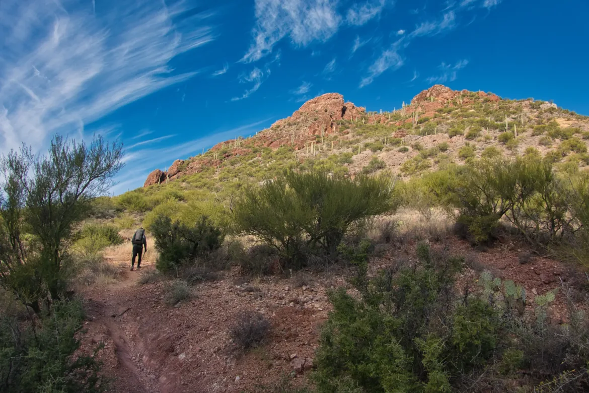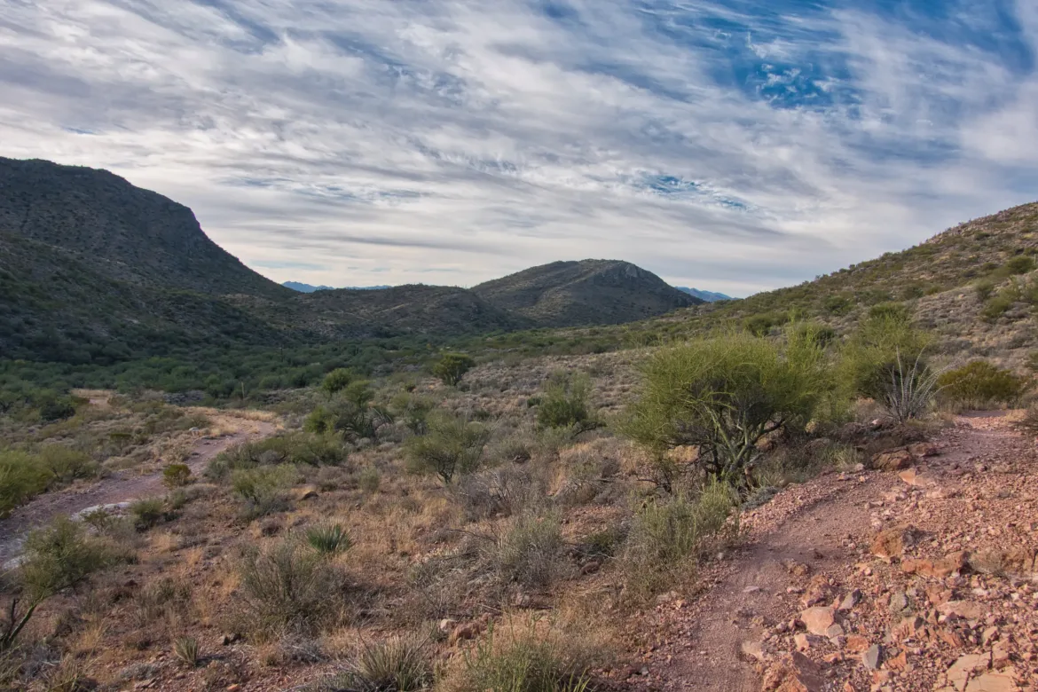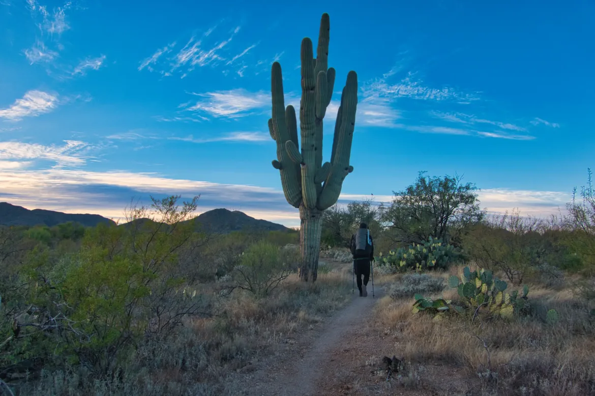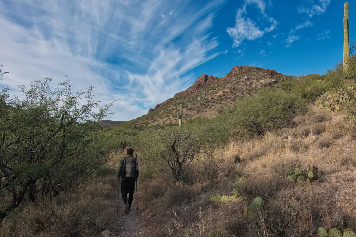 There were first some rolling hills that gradually made way to some more mixed terrain with dramatic cliffs and some swirling rock layers. We pressed forward and got to Colossal Cave where we would be resupplying when it opened. I had a resupply package, but Kevin was hoping for a good hiker box and lucked out. He was able to fully resupply from the hiker box so he wouldn’t have to go to Vail which was logistically challenging.