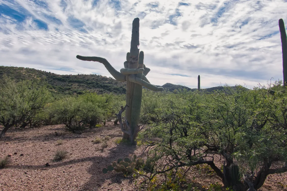 The trail was quite a bit flatter after the cave. Just low desert terrain with grasses and bushes and occasional cactus. There wasn’t too much of note though it wasn’t a bad hike.