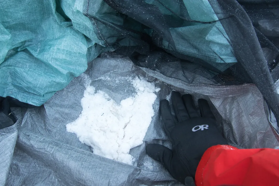 There was heavy frost on our tents. When I shook mine out in the morning, there was about a snowball worth of snow inside my tent. Such a heavy coating. Packed the tents up frozen and got up my fortitude to get out of my warm clothes and into my lighter hiking clothes. At the last minute as always.