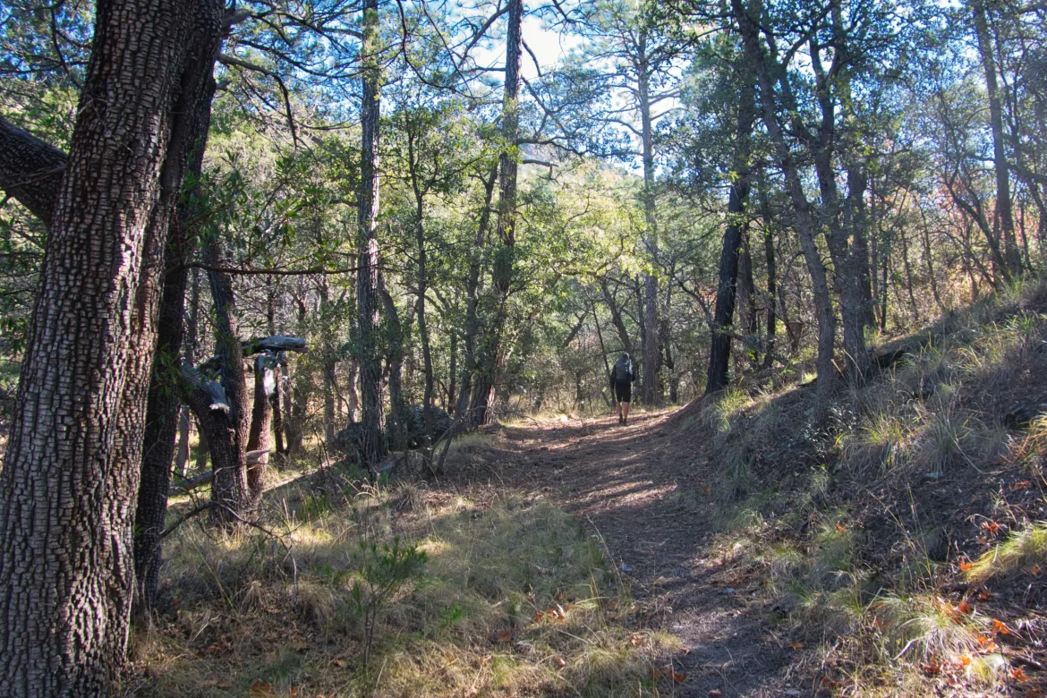 The trail then started to forever wind down, undoing all of the climbing we did today. It was nicely graded but it went down, down, down. We arrived at Montezuma Pass, which is the trailhead for the terminus. Took a break and emptied trash. We also left our water for the night behind since we would descend to the border and have to climb right back up. We carried our packs, but no need for the extra water at the moment.