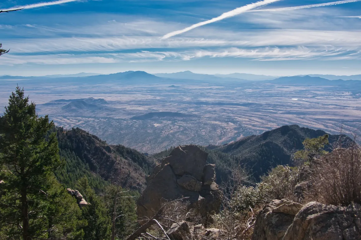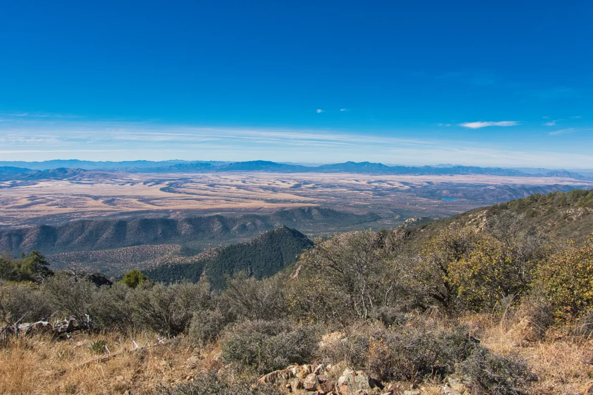 The trail eventually ran out of creek to follow and we started steeply up switchbacks to finish the ascent to the ridge. I sort of like the steeper climbs since it gets you up the mountain quick, and since we are in good hiking shape now it wasn’t too difficult. We crested the ridge after a 3,000 foot climb this morning and took a lunch break at a clear spot where we could see off both sides of the ridge with flat desert and sporadic mountains around us.