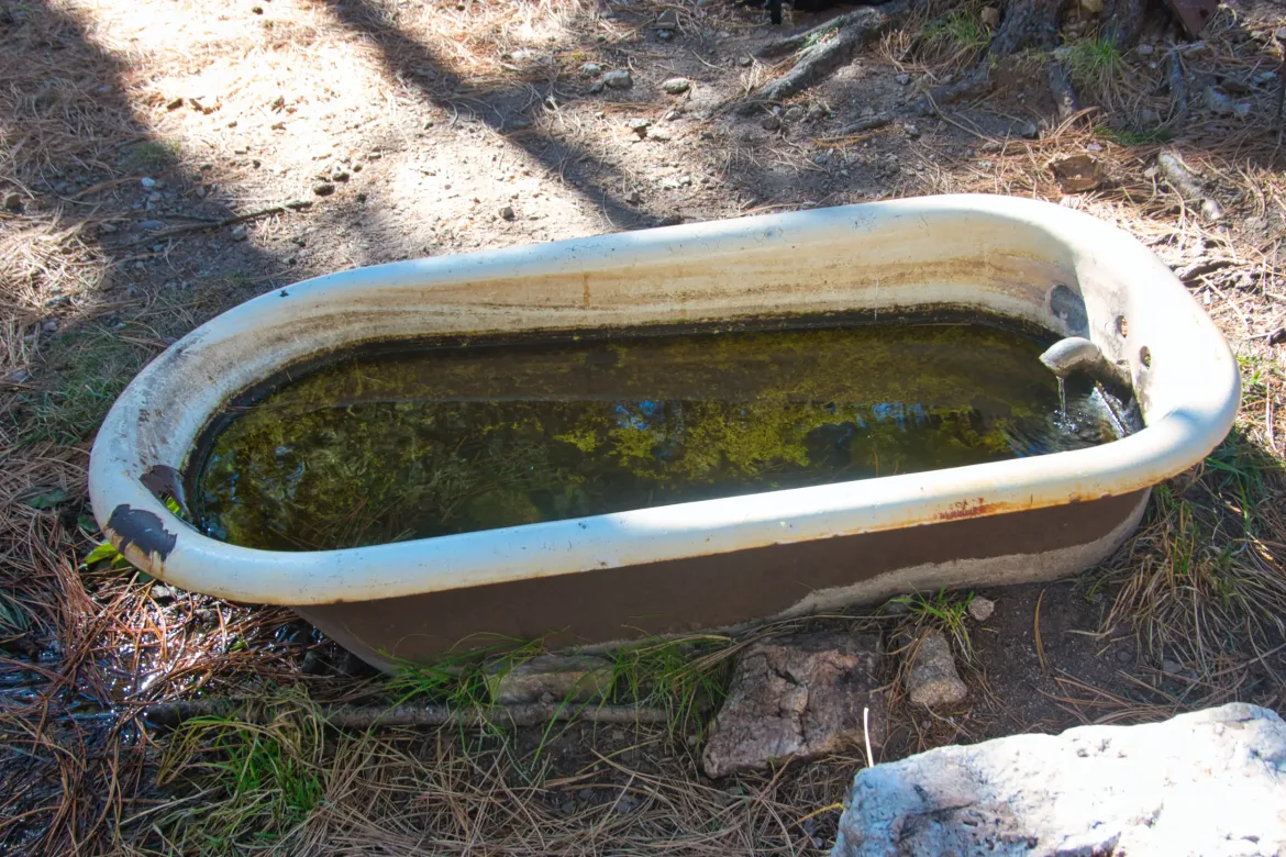 We leapfrogged with Kelley and Chuckwagon who also intended to finish today. They had a friend meeting them at the end and we asked if there was extra water in their car but they were unsure. We filled up water at the last spring on the trail flowing into an old bathtub with enough for the rest of the day and night. The birds were quite pissed that we were at their watering hole.