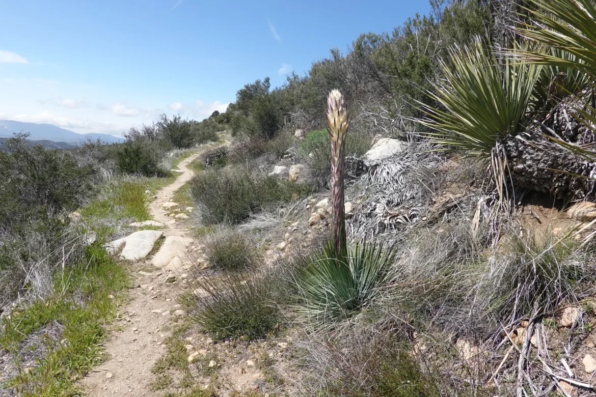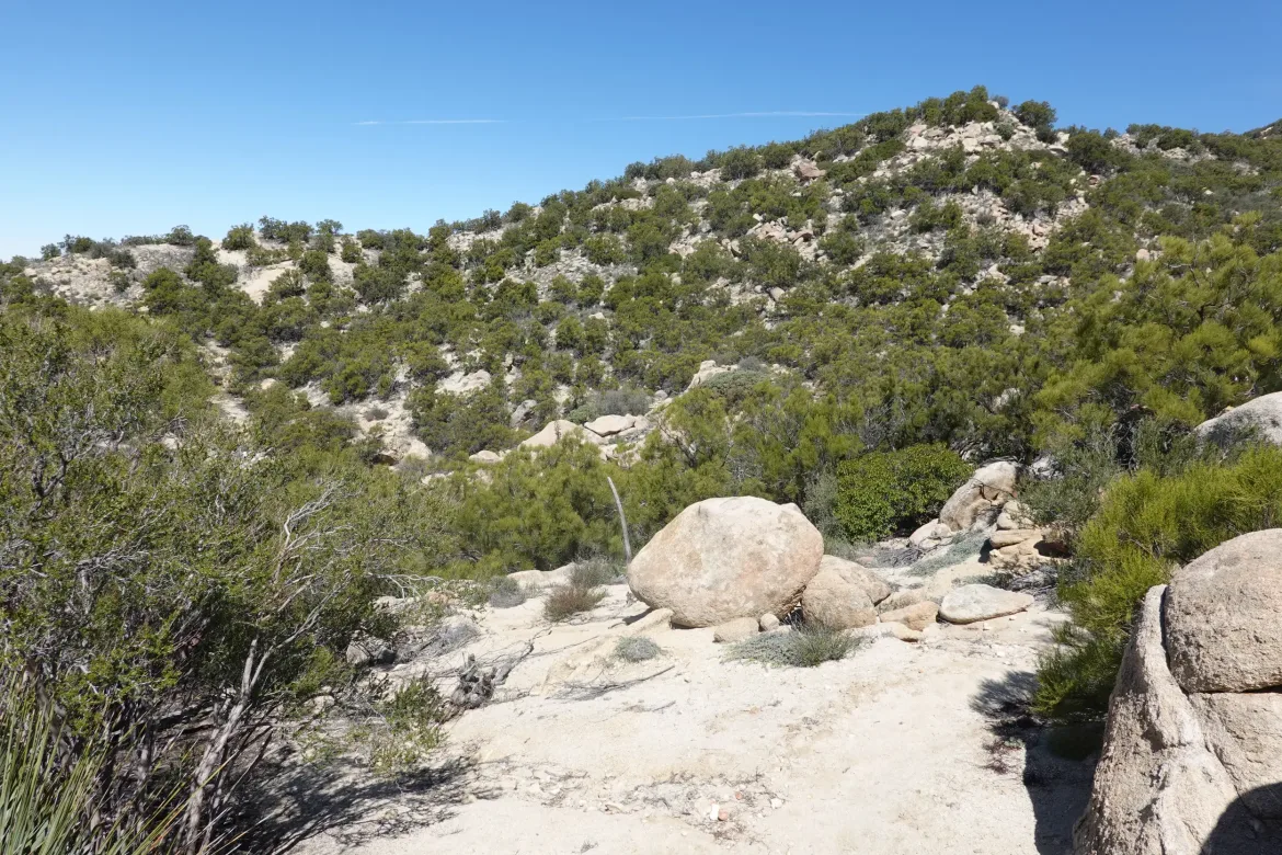 After my break, it was a cruise to the road. San Jacinto revealed itself ahead with its snowy peaks and ridges. This is the next challenge and the subject of much discussion among the hikers. The trail goes to 9,000 feet through deep snow on top of ice, so it may not be safe to cross with our minimal gear , in addition to the new snow coming. We will have to see what it looks like after the storm.